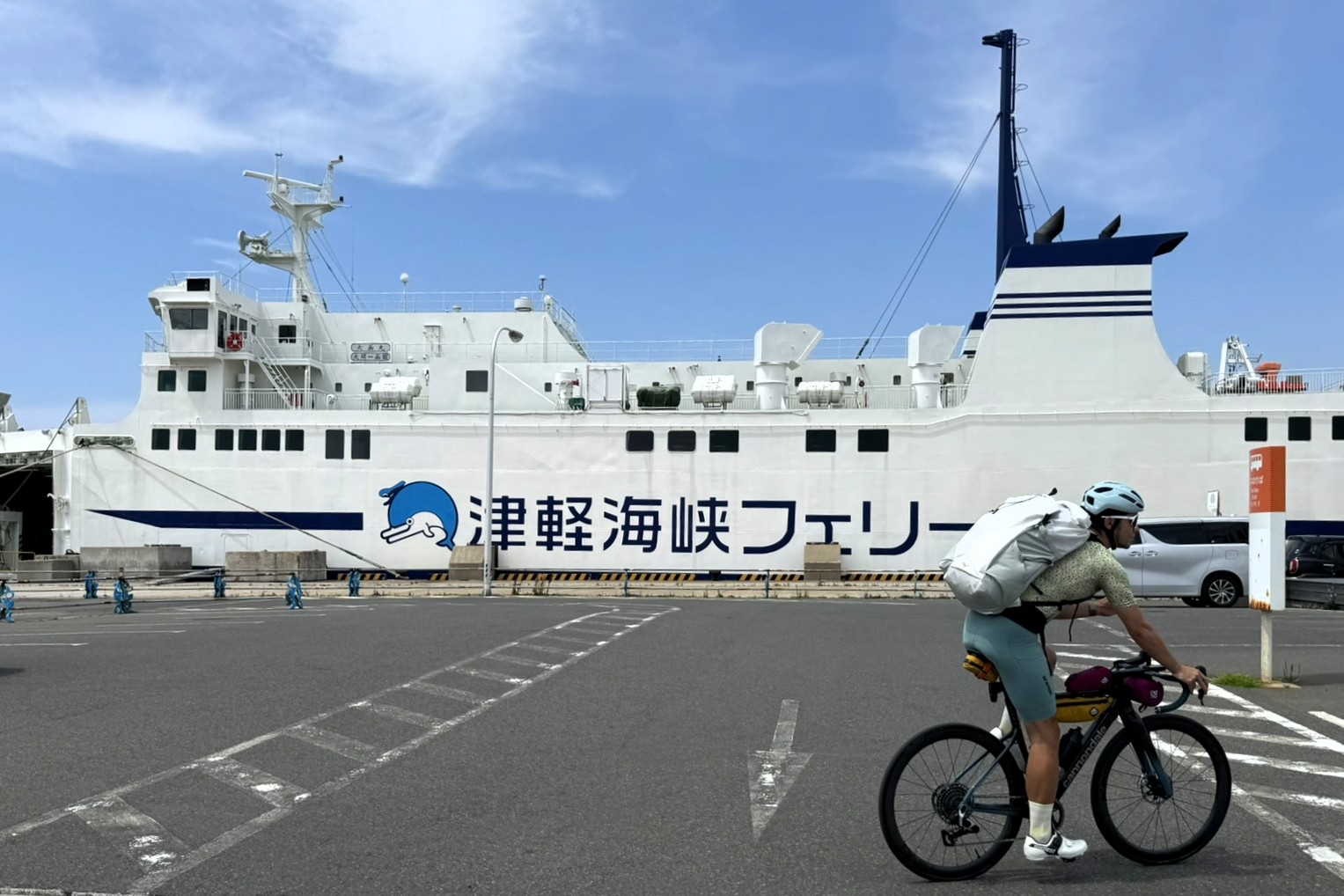 再びサドルにまたがり、フェリーを降りて北の大地・北海道へ力強くペダルを踏み出す。