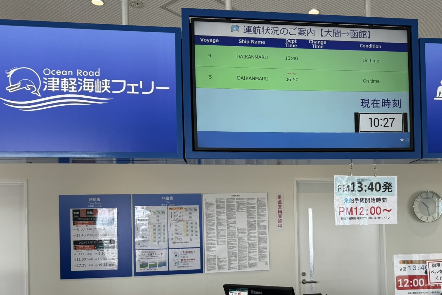 お土産も無事に購入し、出航の1時間前に大間フェリーターミナルへ到着。ここから下北半島と函館を結ぶ「津軽海峡フェリー」に乗り込みます。