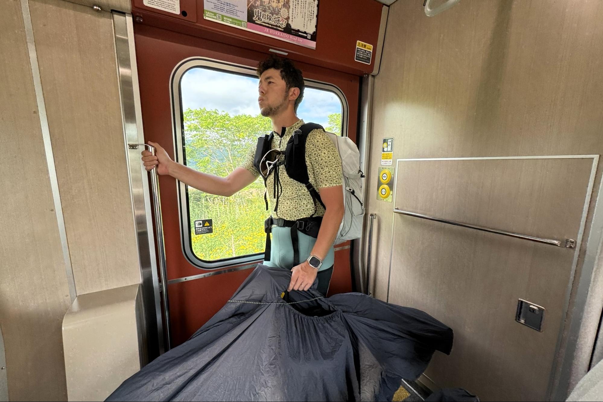 今回の旅のライドは函館駅でゴール!本来なら余韻に浸りたいところだが、乗車時間が迫っていてのんびりしていられなかった。駅に着いてホッとしたのも束の間、電車の出発まで残りわずか。汗だくになりながら輪行準備を整える、まさに最後のラストスパート!