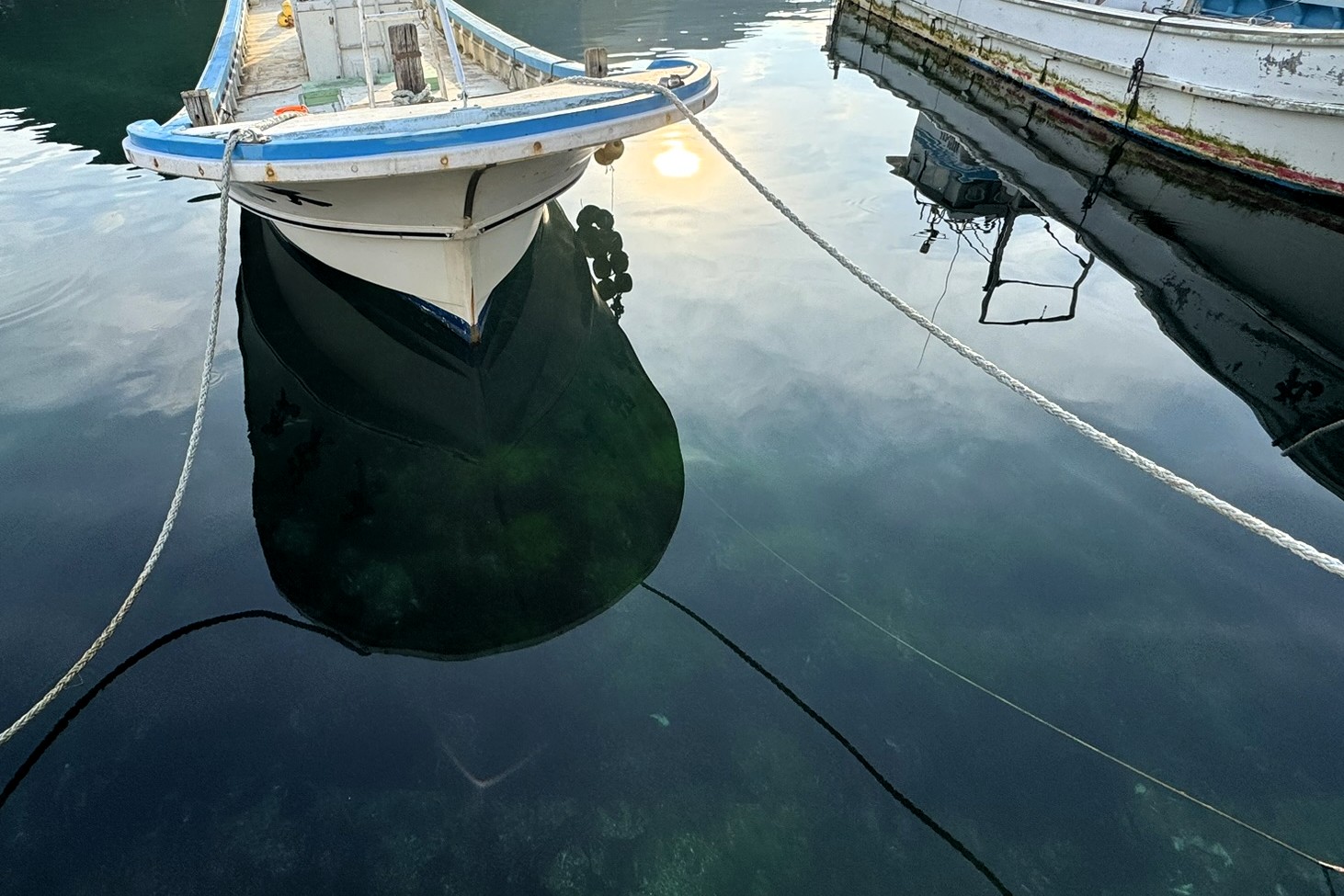 海面を覗くと、その透明度に息をのむ。魚の影はもちろん、海底の石や海藻までくっきりと見えるほど澄んでいて、まるで水族館の水槽をそのまま自然に置いたかのような美しさだ。