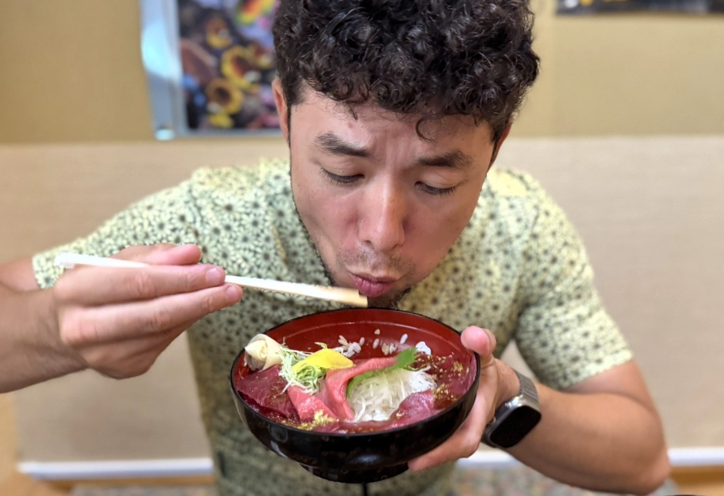 けんたさんも無言で、ひと口、またひと口と夢中で箸を運ぶ。中トロは口に入れた瞬間、まるで雪のようにふわりと溶け、跡形もなく消えてしまう…あれれれれ?どこいった的な)。
