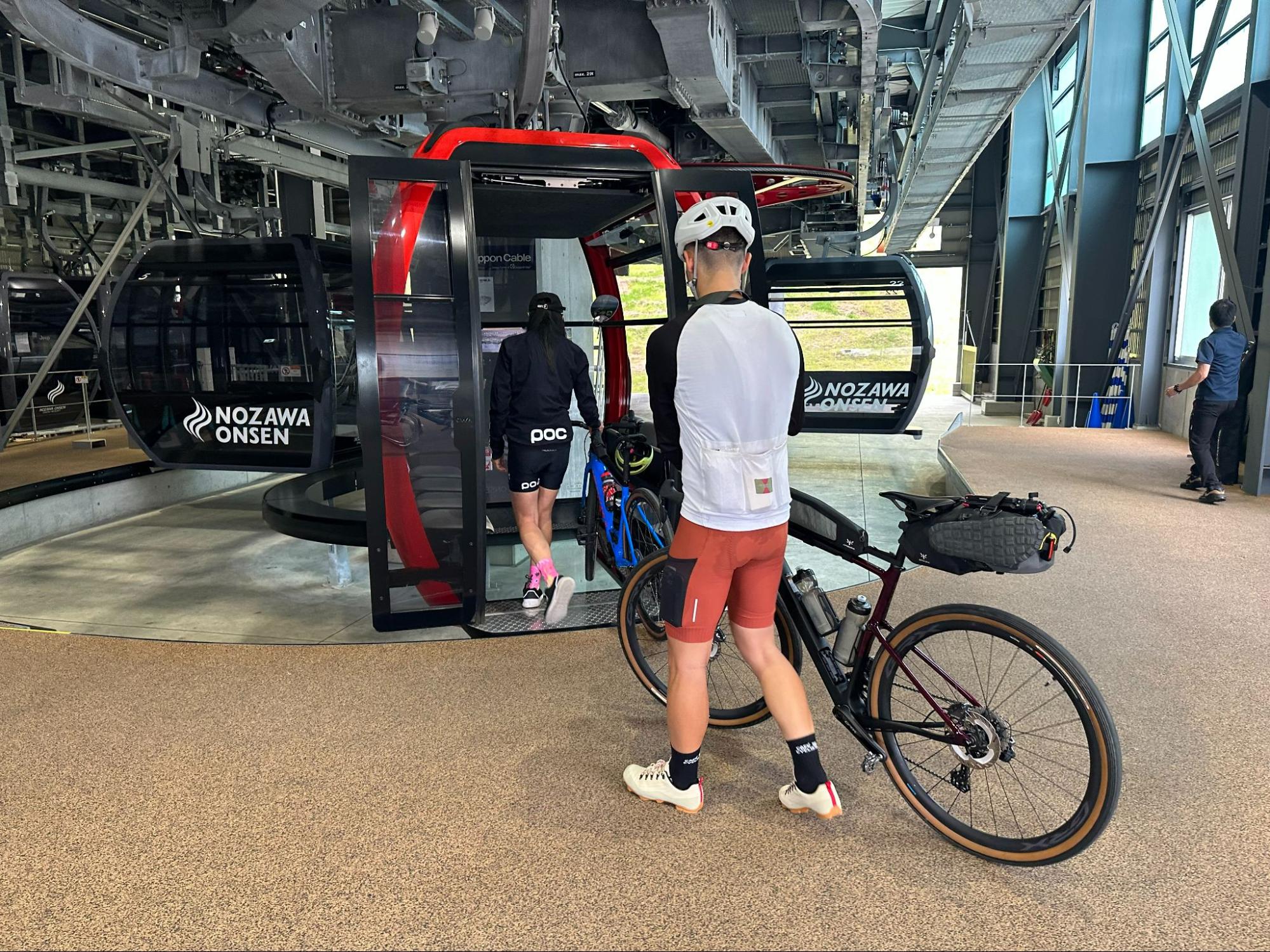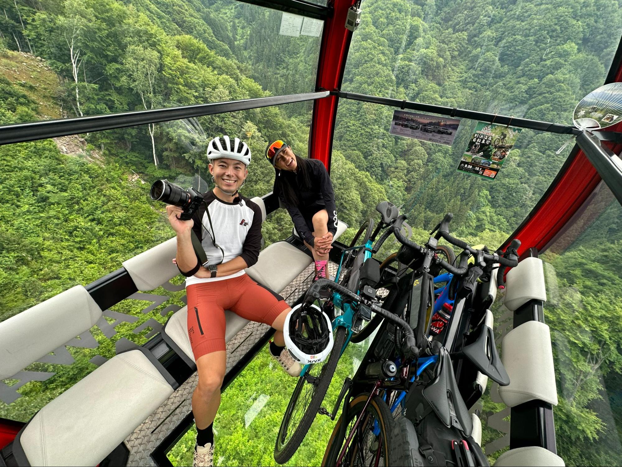 This is the world's most advanced gondola, which was replaced in 2020. It takes about 8 minutes to reach Yamabiko Station at the top, a distance of about 3km (789m elevation gain). The speed of the gondola slows down when you board, so you can put your bicycle on the gondola without being in a hurry. Tsucchi and I were admittedly a bit nervous.