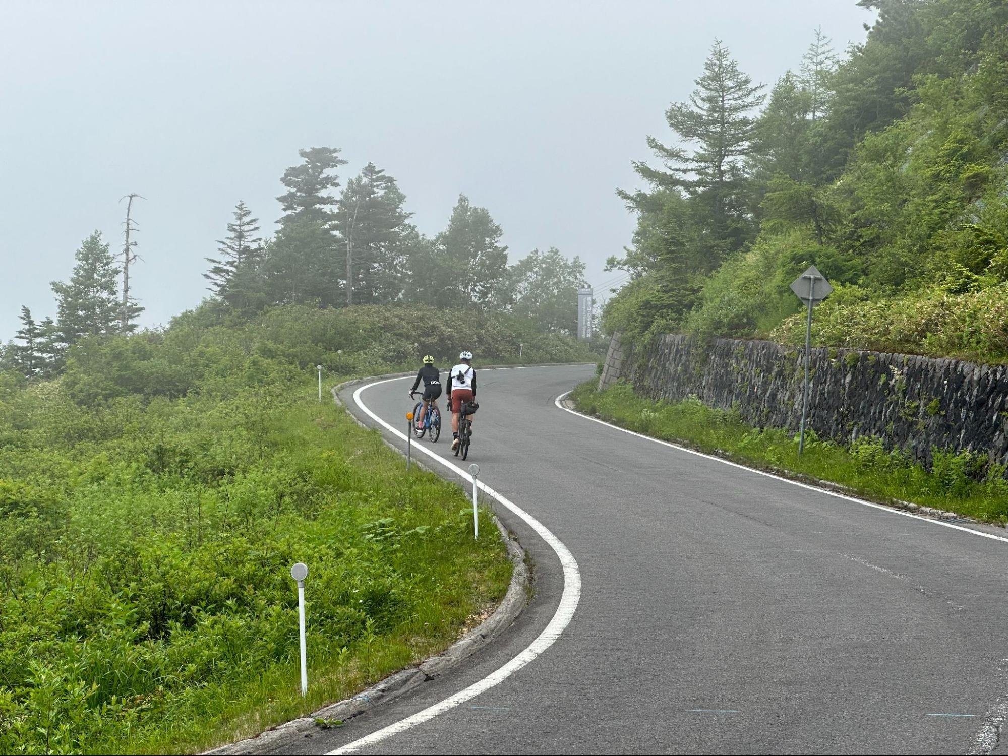 I was relieved after loading my bike into the support car. Since we had come all this way, we took the support car to Shibu Toge. Normally, a jacket is a must even in summer because the weather can change suddenly, but in fact, I made the painful mistake of not bringing a jacket because Iwas caught off guard by the summer weather.