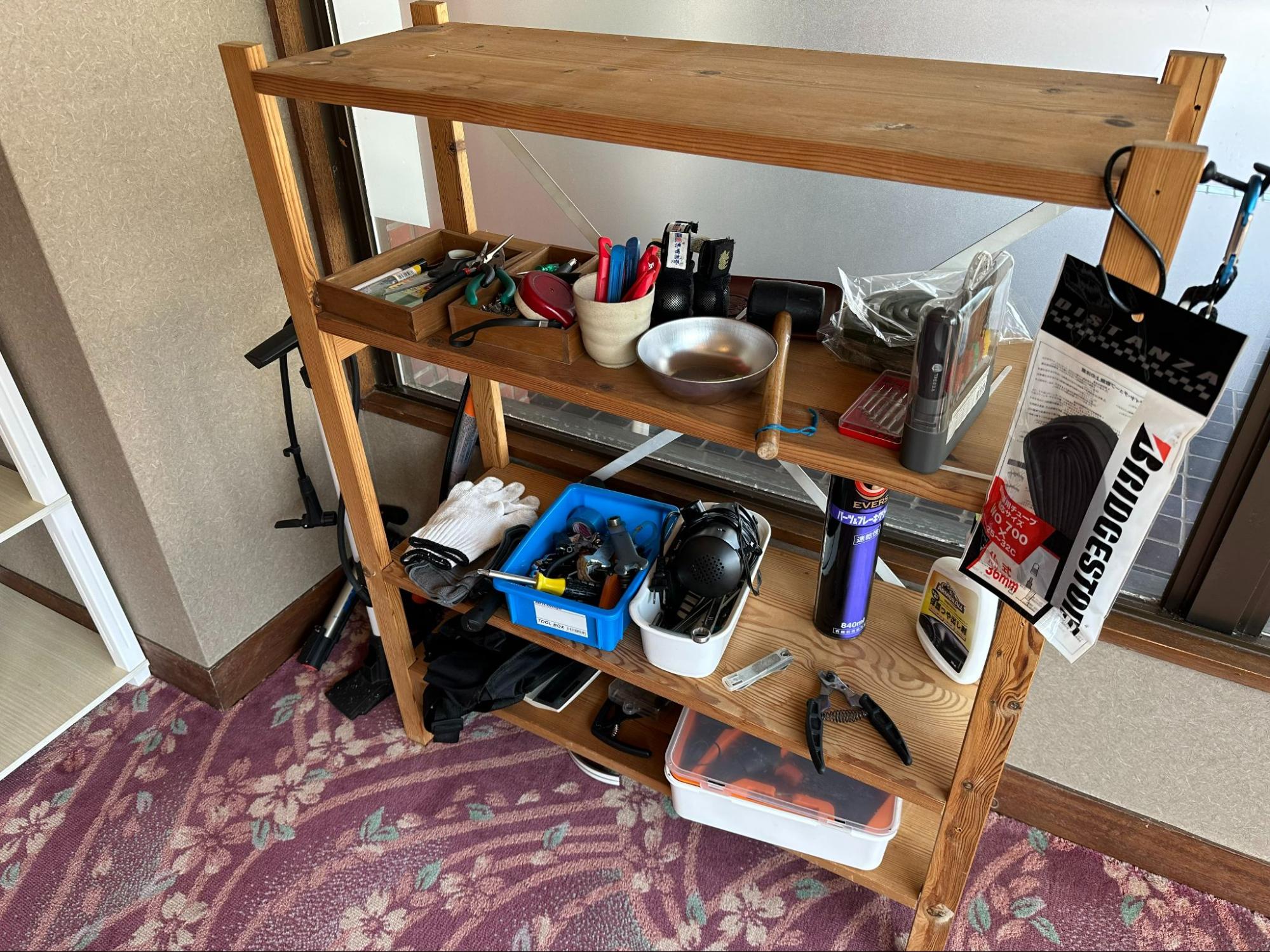 We have arrived at today's inn, "HOTEL & RESORT Kiyomizu Bozanso." The hotel is very cyclist-friendly, with laundry facilities as well as maintenance tools.