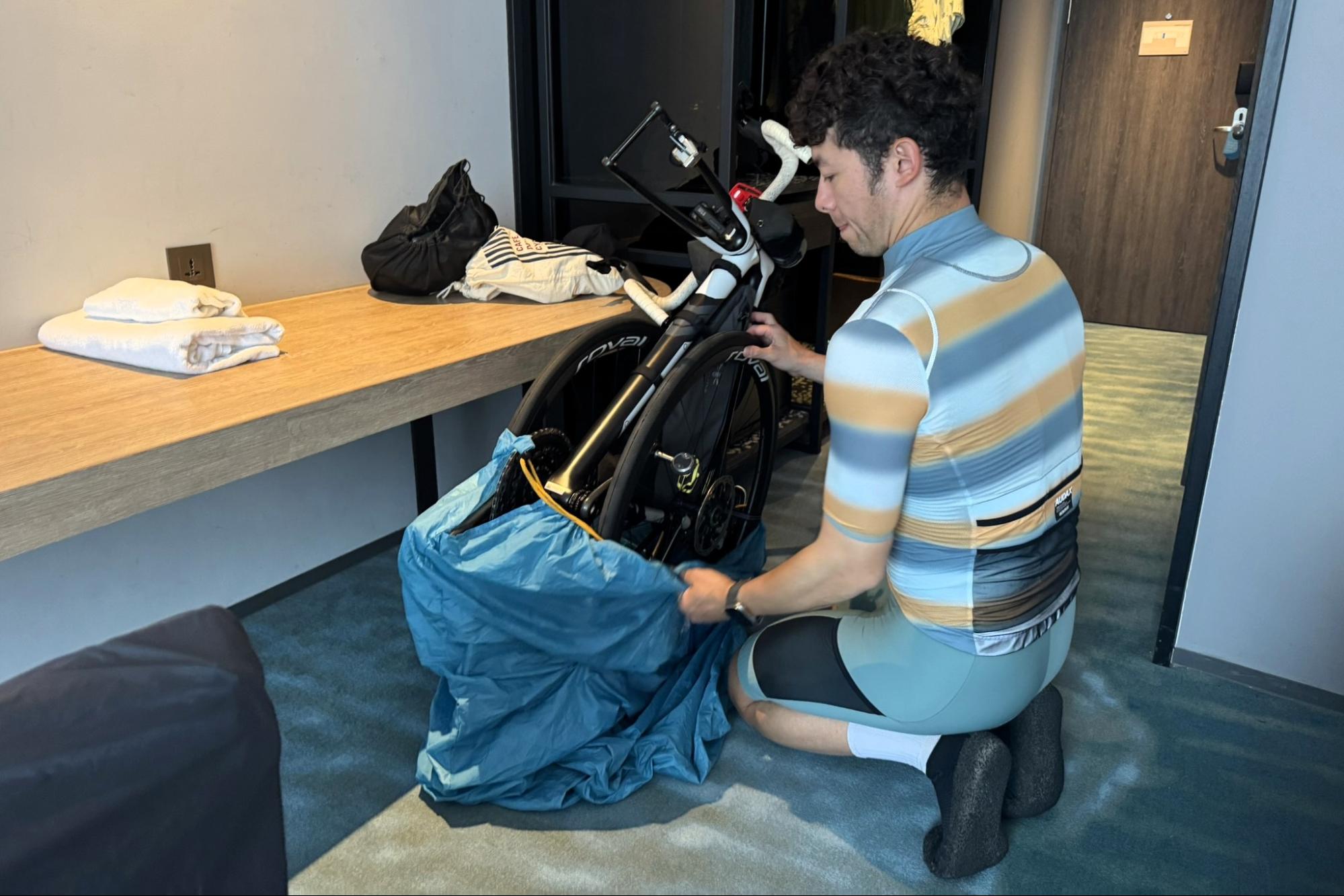 Before leaving the hotel, we thoroughly checked the bike bags. We made sure the bikes were properly secured and that there was no damage to the bags before boarding the bullet train. With everything in perfect condition, we were ready to start today's ride with peace of mind!