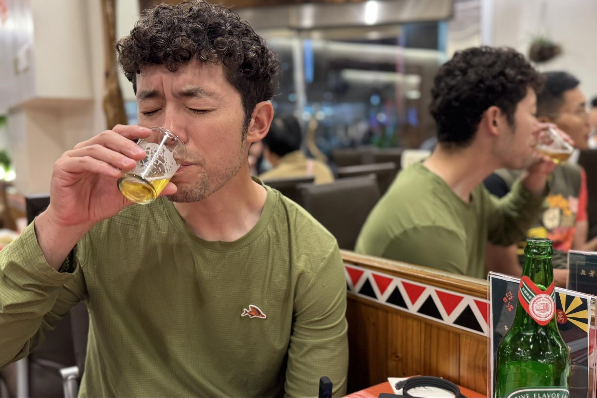 The perfect end to the ride? A cold glass of Taiwan Beer. It soaked into our parched bodies and brought out smiles all around. This was the moment we pedaled for—and it gave us the energy to take on tomorrow's adventure, too.