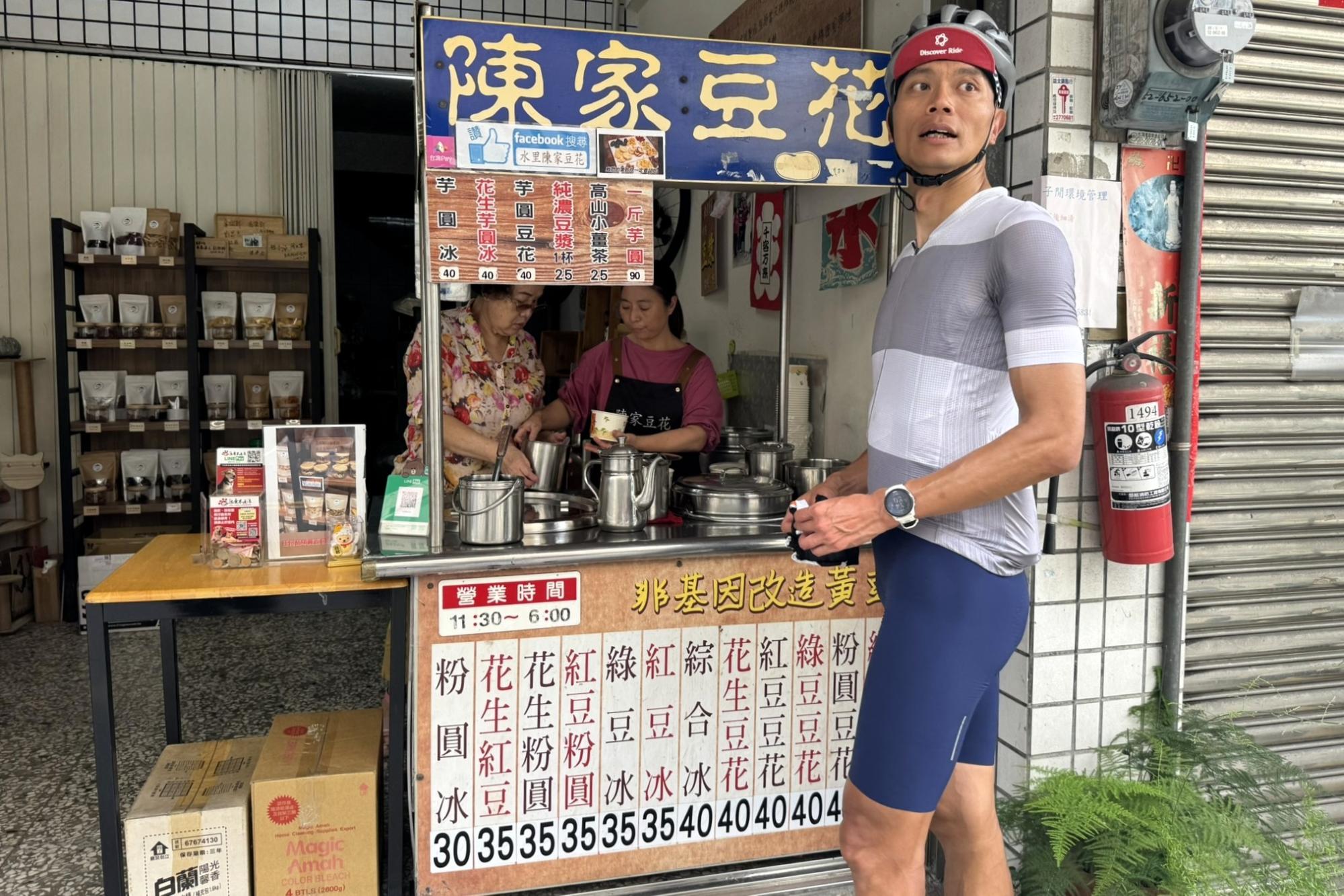 At the foot of the climb toward Sun Moon Lake, we stopped at a famous dessert shop in Shuili called “Shuili Chen Family Douhua.” It's a beloved spot among local cyclists—a perfect place for a sweet break and energy recharge.