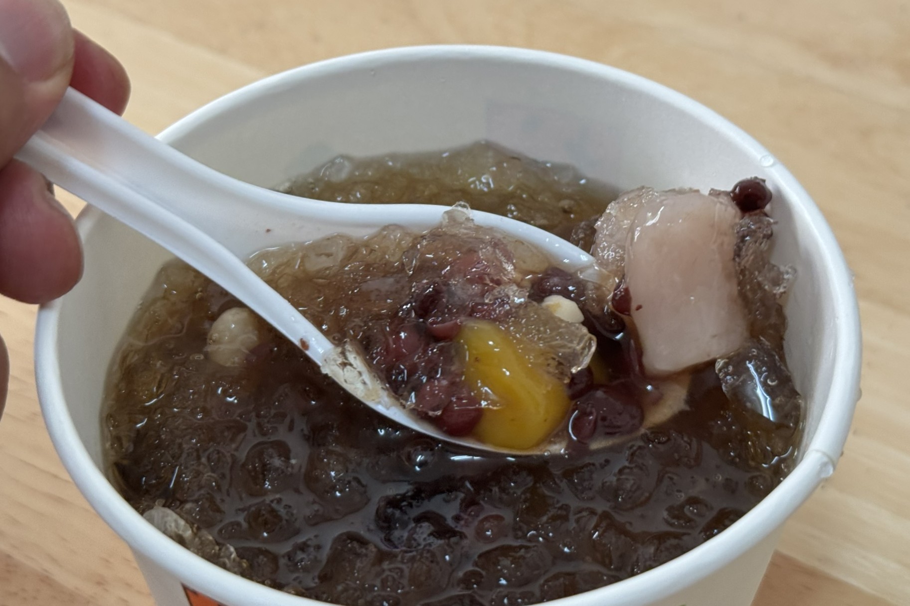 We ordered a chilled mixed douhua—silky tofu topped with chewy delights like tapioca pearls and mochi. It was just what we needed to cool down in the nearly 30°C heat. The generous portion for just NT$40 (around ¥200) made it even more satisfying.