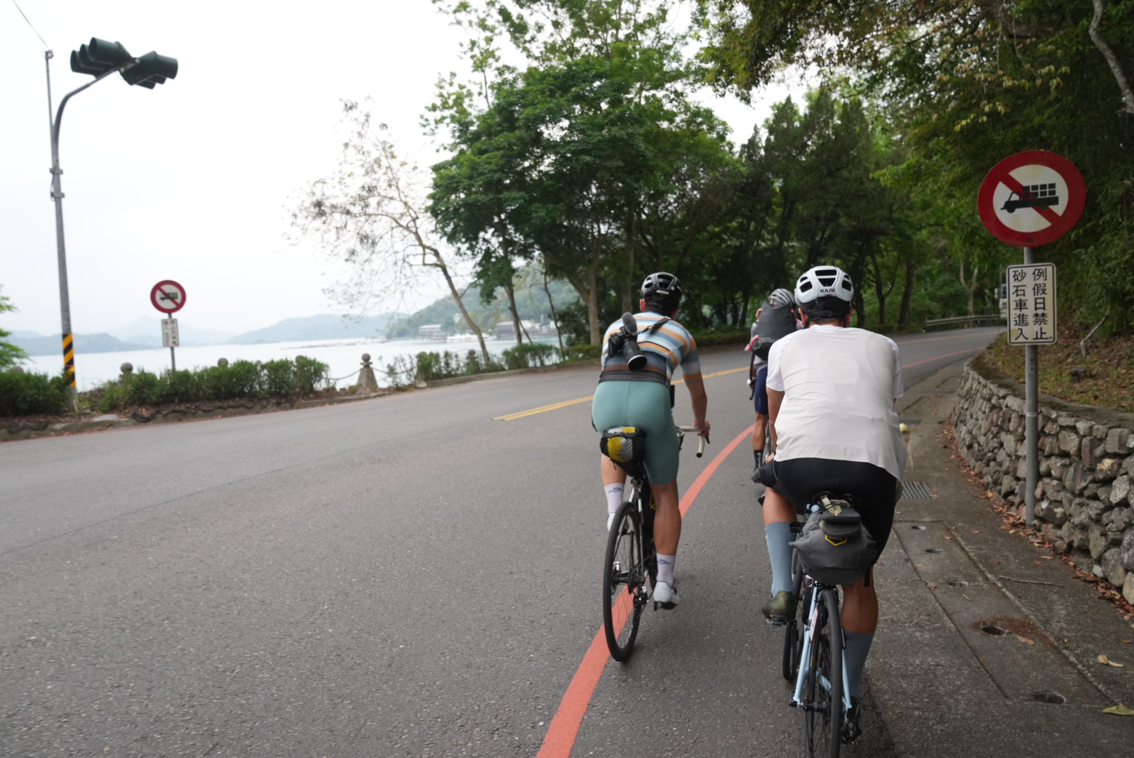 After grinding through nearly 20 km of climbing, we finally arrived at Sun Moon Lake, one of Taiwan’s top scenic destinations. The lakeside roads were busy with tourist buses, so we kept our focus all the way to the finish.
