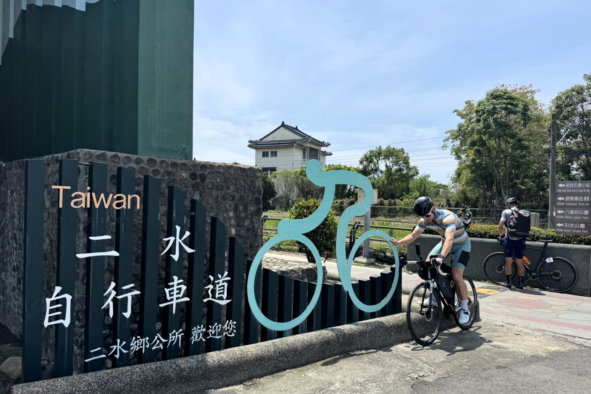 Pedaling through farmland, we reached the Ershui Bike Path, a popular cycling route that runs alongside the Jiji Line, a local railway. If you're lucky, you can ride parallel with the train—a charming feature. Though we didn’t catch a glimpse of the train this time, riding through the calm scenery was soothing in itself.