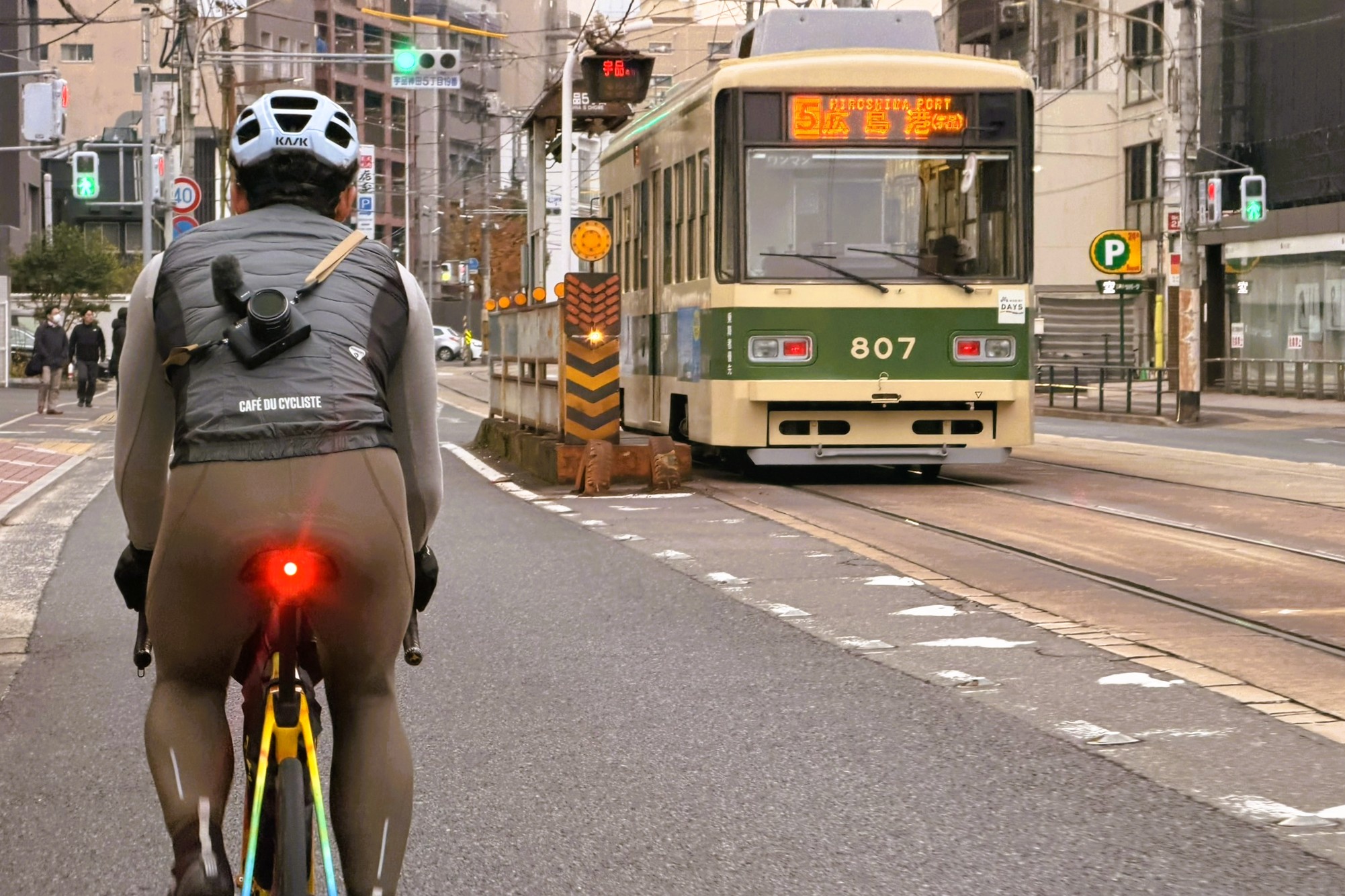 広島市内には路面電車が走り、朝から通勤や通学でフル稼働。その横を自転車で走れるという、なかなか貴重な体験ができるのも広島市内ならではだ。