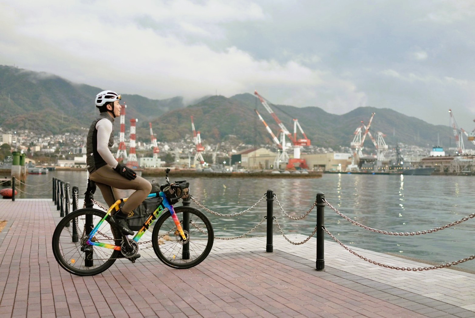 どこか懐かしさを感じさせる港町の風景と、やわらかな太陽の光のコントラストがとても美しい。車ではきっと気づかずに通り過ぎてしまうような景色に出会えるのも、自転車旅ならではの魅力だ。