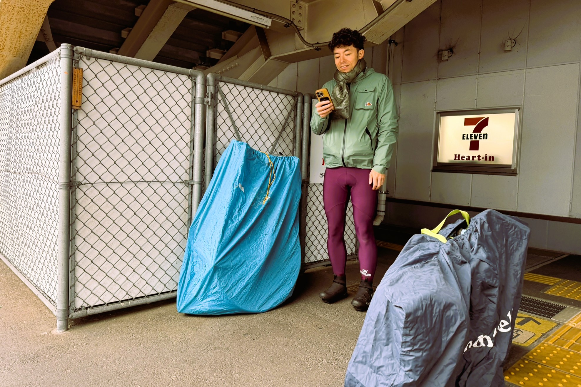 不安とは裏腹に、車両の一部には広めの荷物スペースがあり、自転車2台がすっぽり収まった。通路を塞ぐことなく輪行できるため、周囲に過度に気を遣う必要もなく、サイクリストとしてはとても気持ちが楽だ。
