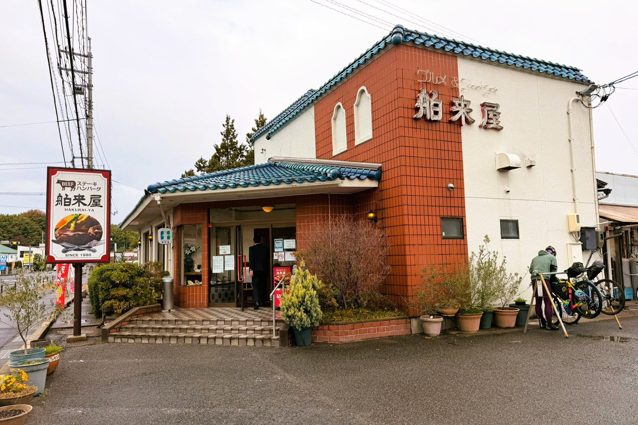 走り始めて約30分で到着したのは、ステーキ&ハンバーグの専門店「舶来屋」。地元客にも観光客にも愛される、安来を代表する人気店だ。