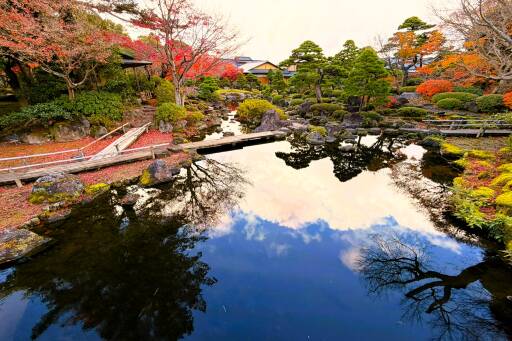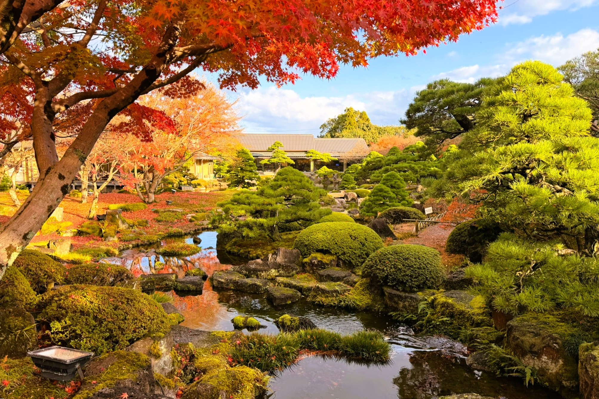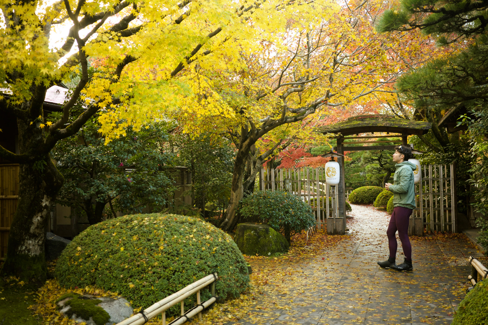 正直、男ふたりで日本庭園を眺めてもどうだろうと思っていた。ところが実際に足を踏み入れると、その完成度の高さとスケール感に一気に引き込まれる。立体的に作り込まれた庭に広がる、色鮮やかな紅葉の景色。思わず立ち止まり、心がすっと洗われていくのを感じた。