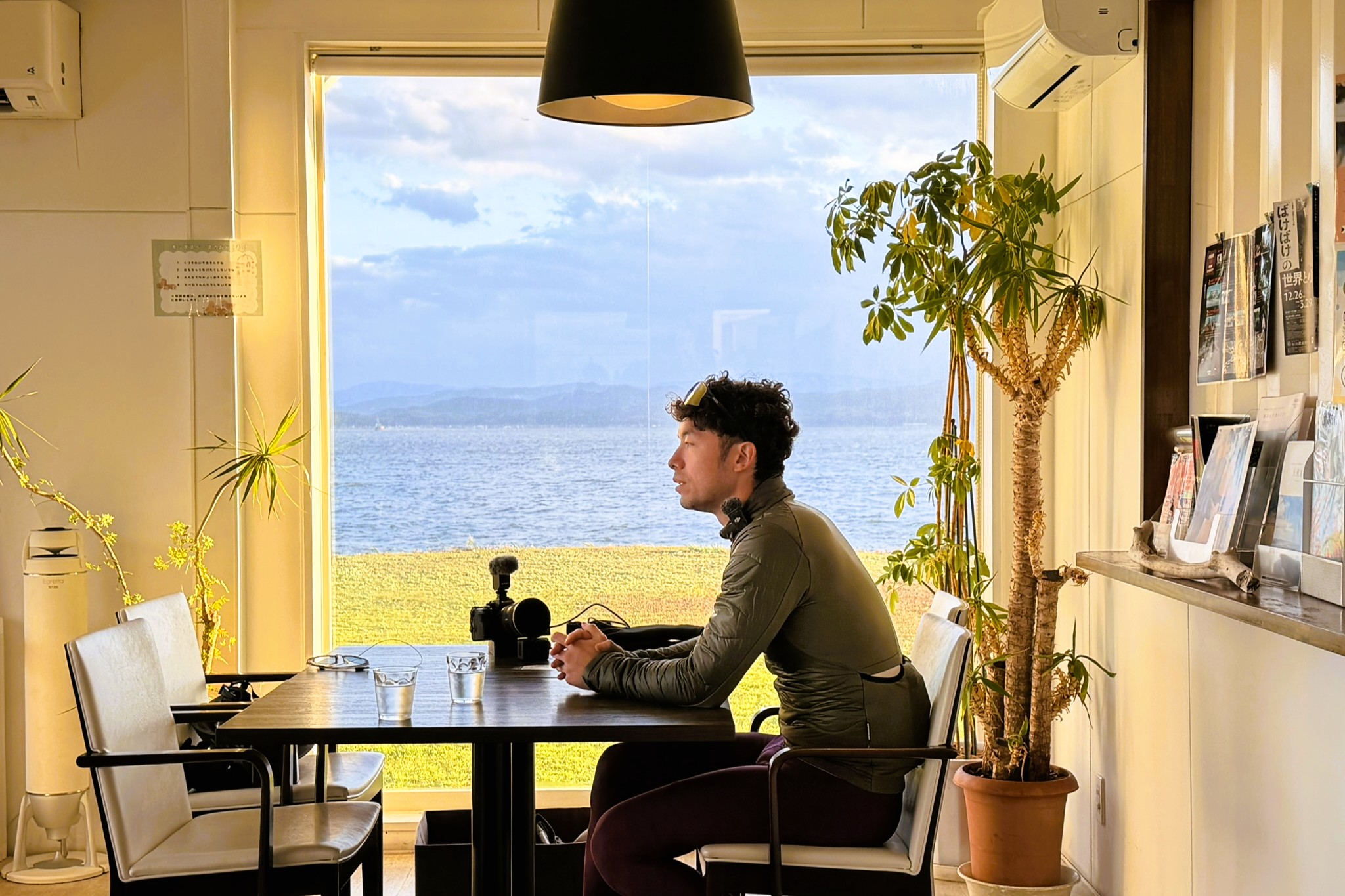 撮影をひと通り終えて店内へ。大きな窓の向こうには中海が広がり、その景色を眺めながらゆったりと食事を楽しめる。外で感じた余韻をそのまま連れ込んだような、穏やかで心地よい時間が流れていた。