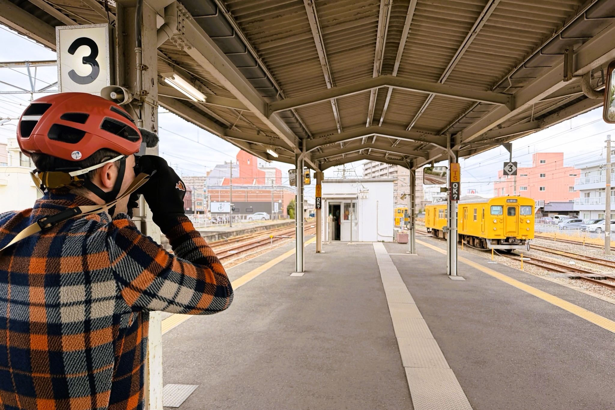 夕日に照らされながら、ゴール地点の新山口駅へ。まもなく山口の旅が終わると思うと、少し名残惜しい気持ちになる。