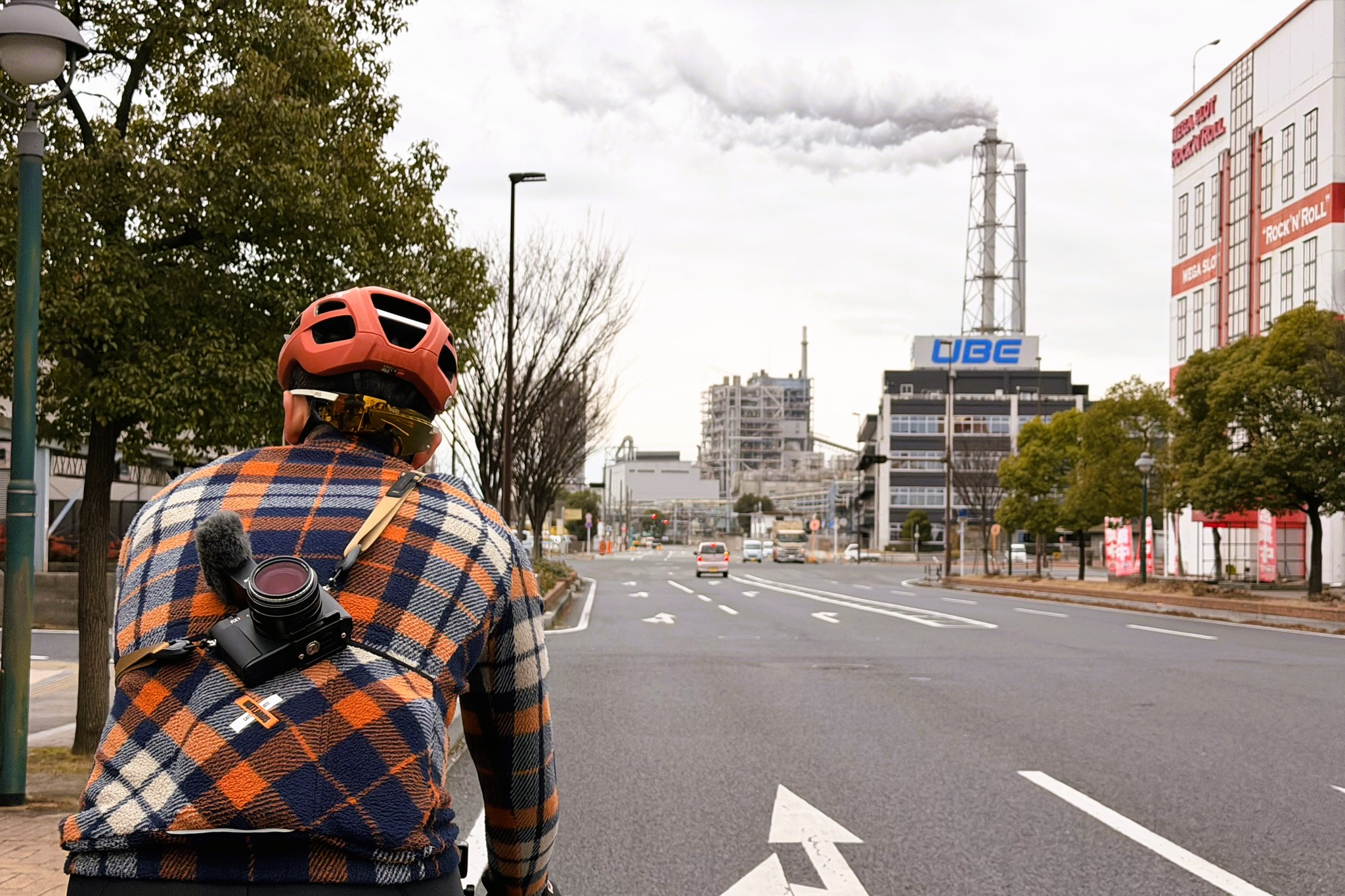 宇部工業地帯は、化学・セメント・鉄鋼などが集積する重化学工業地帯。広い敷地に工場やプラントが立ち並び、独特のスケール感がある。街中とはまったく違う風景が続き、走っているだけでも印象に残るエリアだ。