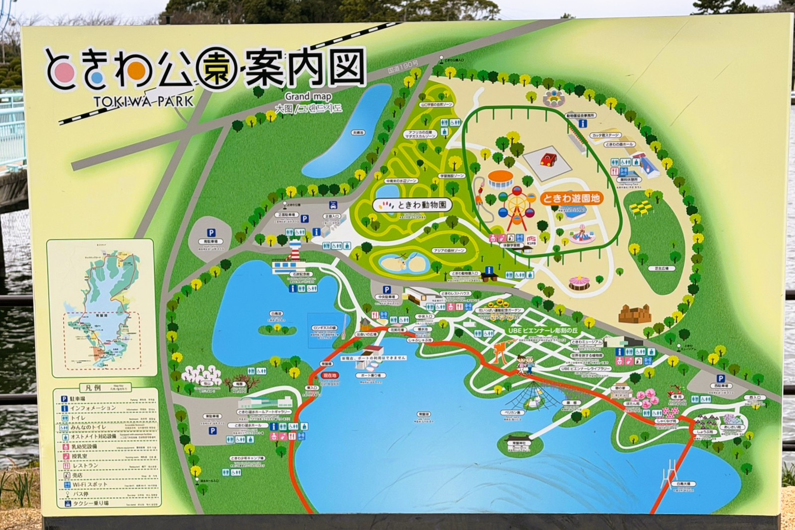 ランチを終えて次に向かったのは、ときわ公園。広大な敷地を誇る宇部市を代表する公園で、園内には湖や遊歩道、動物園、彫刻作品が点在している。自然とアートがゆるやかに混ざり合う気持ちのいい場所。